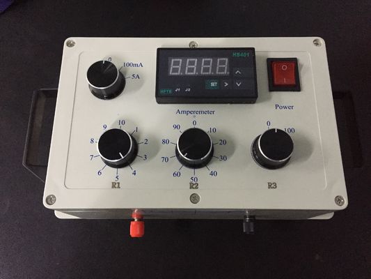 Die Lampe in der Beleuchtung wird durch den Teststromkreis wie in Zahl C.3 gezeigt ersetzt. Der Test wird mit dem Teststromkreis, -beleuchtung und -Schaltgetriebe begonnen, die bei der umgebenden Temperatur der Entwurf-sicheren Einschließung stabilisiert werden. Indem man den Widerstand R sich unterscheidet, wird der Lampenstrom auf einen Wert justiert, der zweimal dem normalen Lampenstrom gleich ist. Keine weitere Anpassung von R wird vorgenommen.